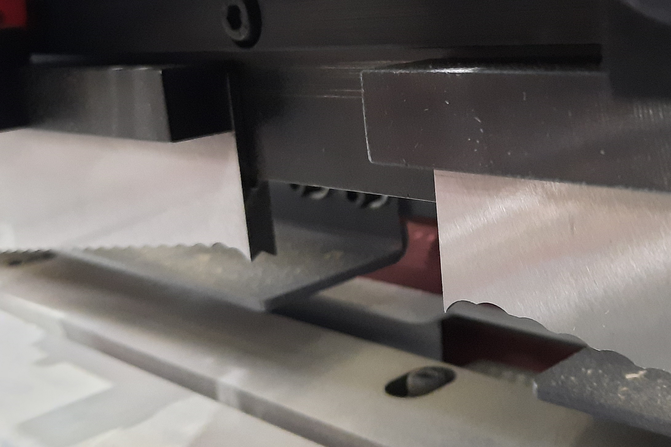 За счет консольной конструкции рамы вырубного механизма возможно изготовление деталей из заготовок, больших по ширине, чем рабочая зона станка. Таким образом, максимальная ширина развертки коробки определяется только шириной рабочей зоны станка и не зависит от размеров заготовки.