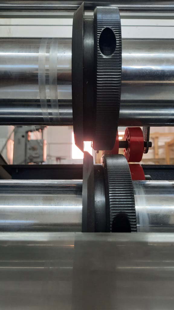 - Настройка на требуемую толщину картона производится с помощью регулировочных штурвалов, объединенных кинематически.