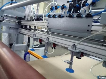 - Захват заготовки производится вакуумными присосками, установленными на траверсе.
