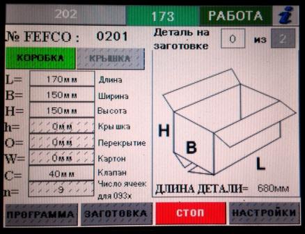 Все размеры коробки вводятся через сенсорную панель оператора.