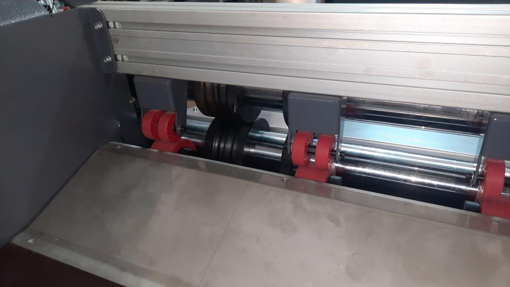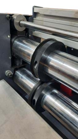 - Настройка на требуемую толщину картона производится с помощью регулировочных штурвалов, объединенных кинематически.