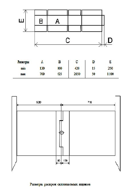 Размеры раскроя склеиваемых ящиков, мм