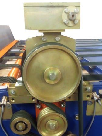 Чтобы были выполнены оба эти взаимоисключающие условия, передача вращения выполнена в виде ремня. В стартовый момент разгона она позволяет раскрутить бандажный вал, а в момент вырубки, даже при несоответствии окружных скоростей валов, будет проскальзывать.