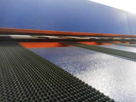 ПЕРЕМЕЩЕНИЕ ШТАНЦФОРМЫ при вырубке происходит с помощью транспортерных лент, что облегчает труд операторов и ускоряет процесс работы.